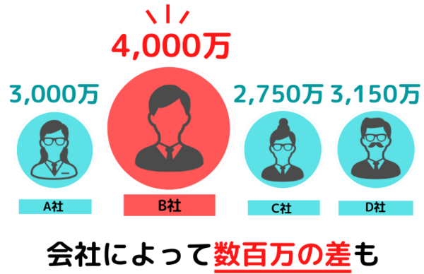 下記のようにA社の査定額が3000万円だったが、B社の査定額は4000万円だったみたいなことが普通にあります。